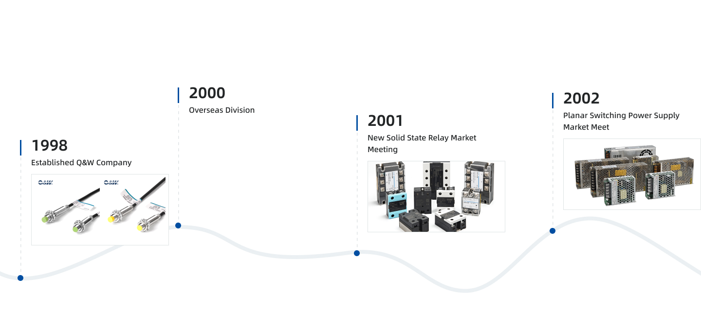 Since its establishment, Q&W has been focusing on a series of products such as sensors, solid-state relays, encoders, switching power supplies, and industrial automation. With the joint efforts of all employees, the company's product series has achieved diversification, novelty, and comprehensiveness from product production, sales, research and development, and technological innovation. From economical to high-end intelligent, it has become one of the leading manufacturers in the domestic market. In 2018, Q&W also founded the QWIFM brand. QWIFM also focuses on industrial products such as smart sensors, smart solid-state relays, and high-end DIN rail switching power supplies.